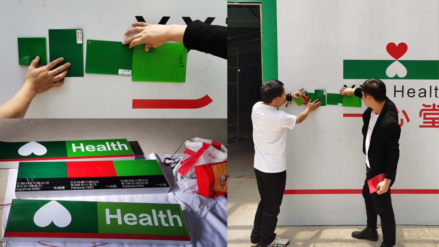 6月11日李華清團隊一行抵達一心堂集團總部與董事長阮鴻獻一起探討落地細節,并為店樣板間落地進行了實地復尺工作。